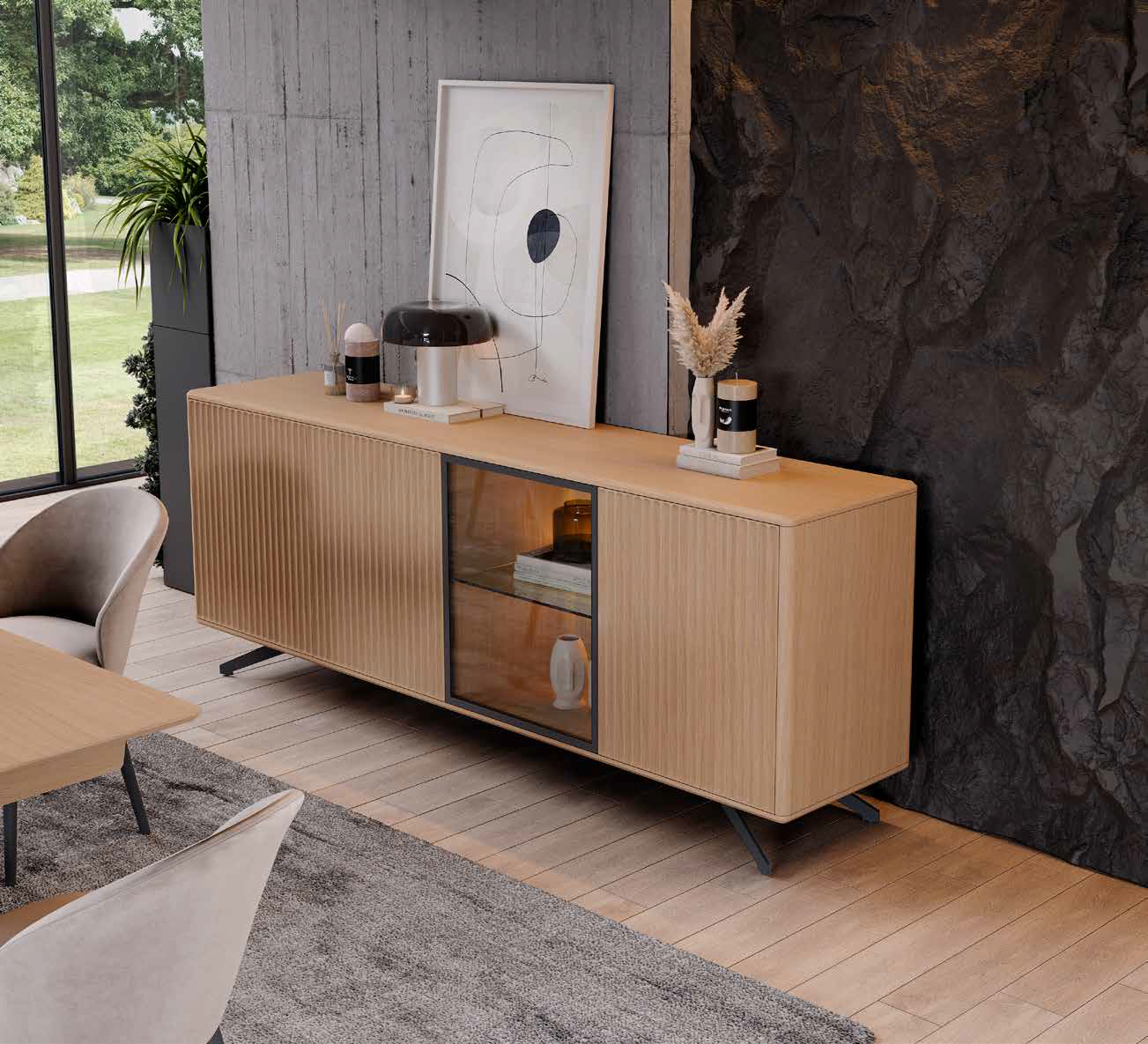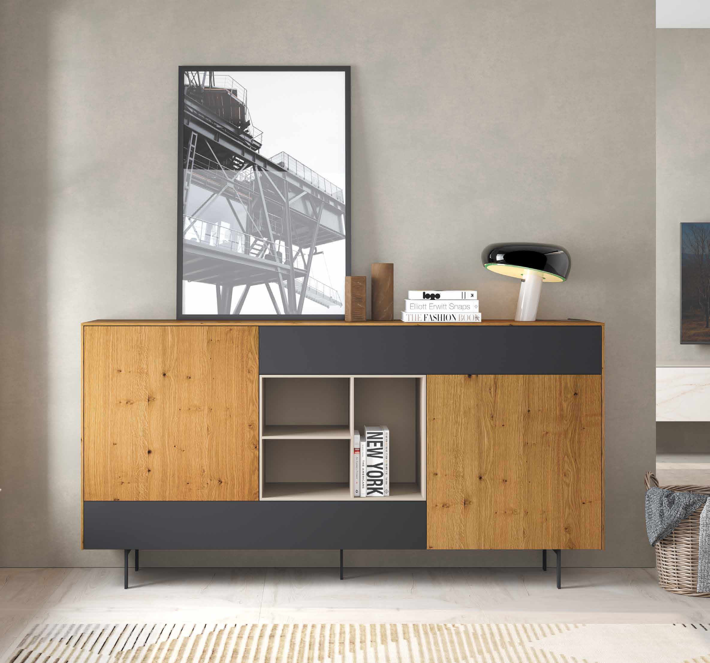 MUEBLE DE SALÓN ROBLE NATURAL Y LACA