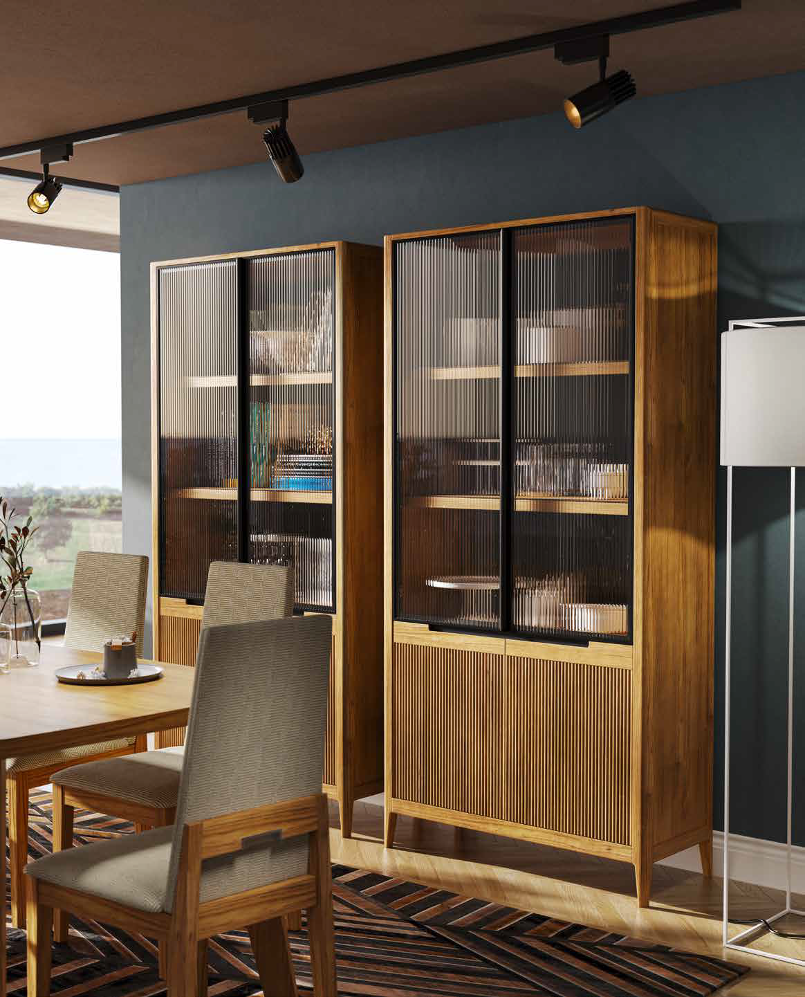 MUEBLE DE SALÓN Y VITRINA ALTA CON LUZ LED
